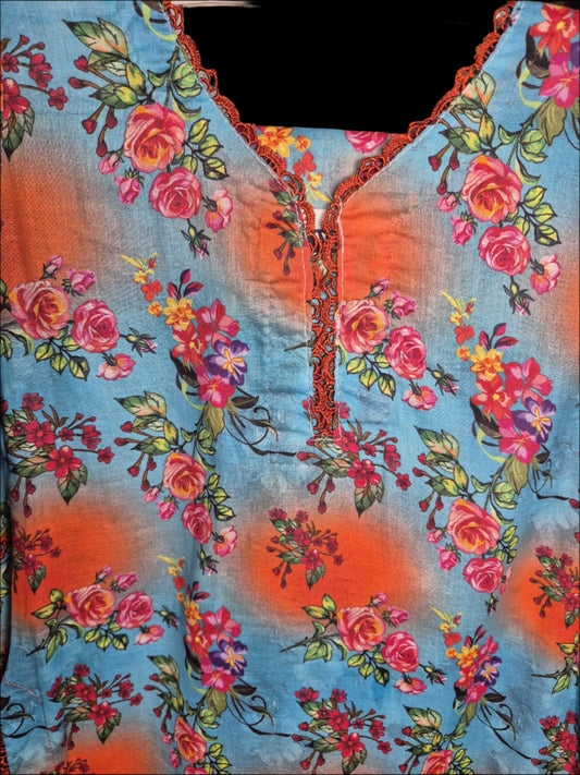LAWN TWO PIECE TROUSER SUIT BLUE FLORAL