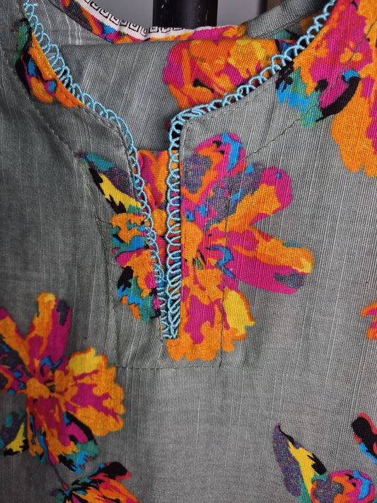 LAWN TWO PIECE TROUSER SUIT BLUE FLORAL
