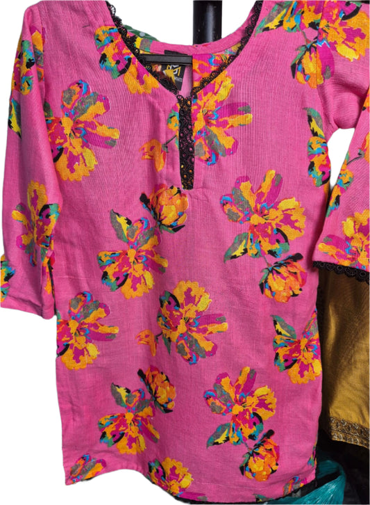 KHADDAR TWO PIECE TROUSER SUIT PINK FLORAL